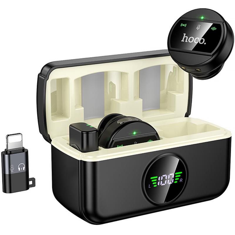 Петличний бездротовий мікрофон Hoco L22 Bright 2in1 (Lightning/Type-C) — це ідеальне рішення для професіоналів, які шукають якісне аудіообладнання для запису звуку. Цей мікрофон підходить для блогерів, журналістів та всіх, хто цінує чистоту звуку та зручність використання. Основна перевага — це універсальність та простота підключення до різних пристроїв.