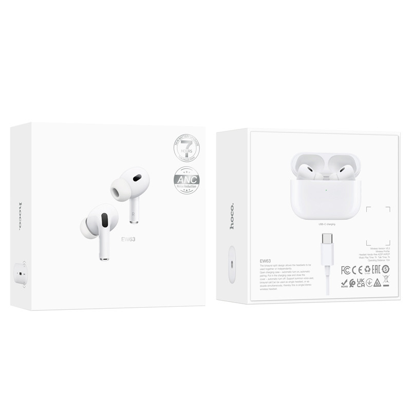 Бездротові TWS навушники Hoco EW63 ANC — це ідеальний вибір для тих, хто цінує якість звуку та комфорт. Ці навушники підходять як для особистого використання, так і для оптових закупівель, пропонуючи чудові можливості для бізнесу в сфері мобільних аксесуарів.