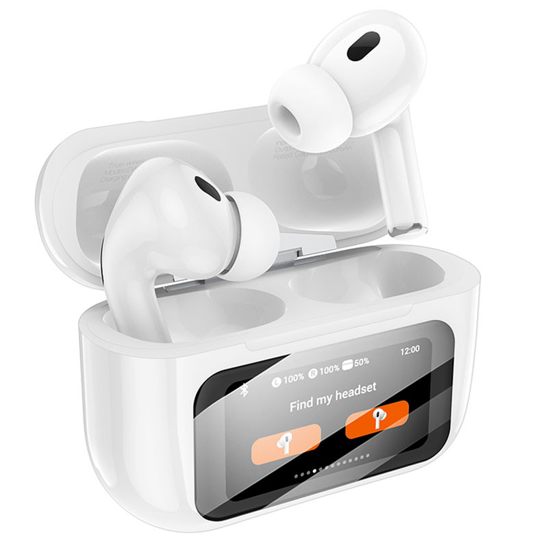Керування навушниками вийшов на новий рівень, за рахунок сенсорного екрану, розташованого на корпусі зарядного кейсу