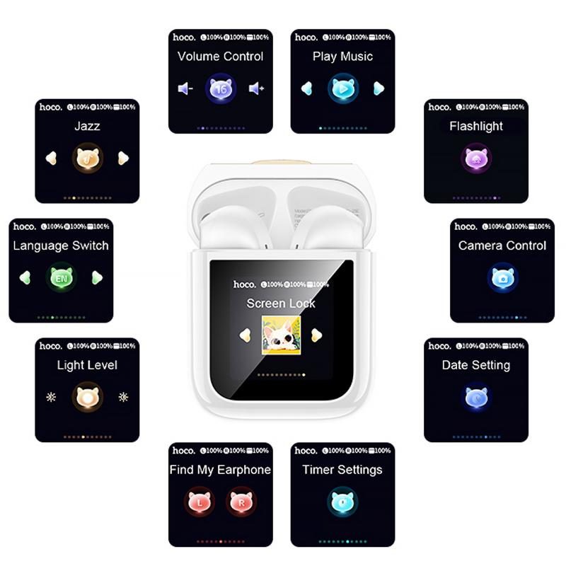Ці навушники підтримують функцію Hall switch та оснащені інтелектуальним сенсорним екраном, який дозволяє керувати налаштуваннями прямо з зарядного кейсу. На екрані відображається поточний рівень заряду батареї та точний час роботи гарнітури та зарядного пристрою.