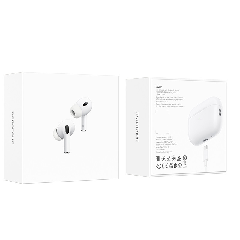 Навушники Borofone BW82 оснащені Bluetooth версією 5.4 та чипом JL AC6983, що забезпечує стабільне з’єднання та високу якість звуку. Ємність батареї становить 300mAh для зарядного кейсу та 30mAh для гарнітури, що дозволяє насолоджуватися музикою до 4 годин без підзарядки. Виготовлені з ABS, вони мають компактні розміри 60.6*45.2*21.7 мм та загальну вагу 57.6 г, що робить їх легкими та зручними у використанні.