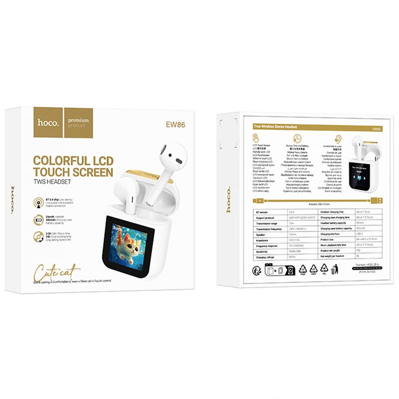 Навушники Hoco EW86 Cat оснащені сучасним Bluetooth 5.4 та чипом JL AC6983D4, що забезпечує стабільне з’єднання та високу якість звуку. Ємність батареї становить 300mAh для зарядного кейсу та 25mAh для гарнітури, що дозволяє насолоджуватися музикою до 3.5 годин без підзарядки. Виготовлені з ABS та цинкового сплаву, вони мають розміри 54 * 44.5 * 23.3 мм та загальну вагу 54 г.