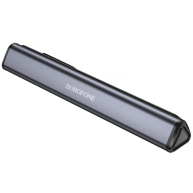 Автовізитка Borofone FC3 Ronny виготовлена з високоякісних матеріалів, таких як ABS та алюмінієвий сплав, що забезпечує довговічність та стійкість до зовнішніх впливів. Поверхня виробу оброблена методом текстурування та оксидування, що надає йому стильний та сучасний вигляд. Компактні розміри (130*20*16 мм) та легка вага (всього 19 г) роблять її зручною у використанні та встановленні в будь-якому автомобілі.