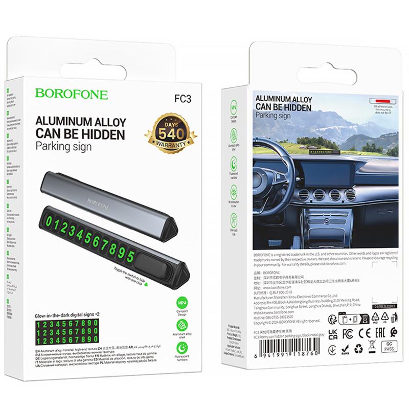 Автовізитка Borofone FC3 Ronny — це незамінний аксесуар для вашого автомобіля, що забезпечує зручність та безпеку на дорозі. Цей продукт ідеально підходить для власників транспортних засобів, які цінують стиль і функціональність. Основна перевага — це можливість швидко і легко залишити свої контактні дані на видному місці.