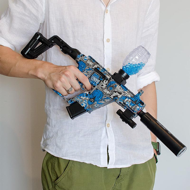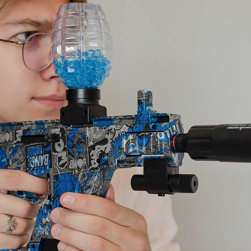 Додаткова ручка на корпусі забезпечує зручний та надійний хват, дозволяючи впевнено керувати зброєю навіть в активних іграх.