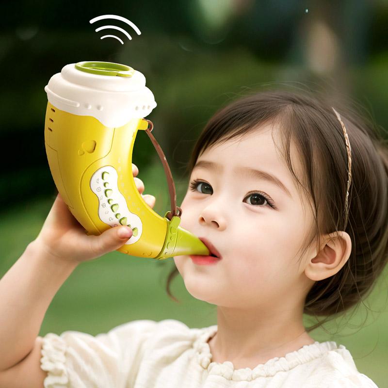 Весела музична іграшка у формі яскравого рогу допоможе дитині познайомитися з голосами тварин та розвинути увагу. Достатньо натиснути на кнопку – і іграшка відтворює різні звуки, перетворюючи гру на захоплююче навчання. Зручна форма та ремінець дозволяють легко тримати її навіть маленькими ручками, а яскравий дизайн обов’язково приверне увагу малюка