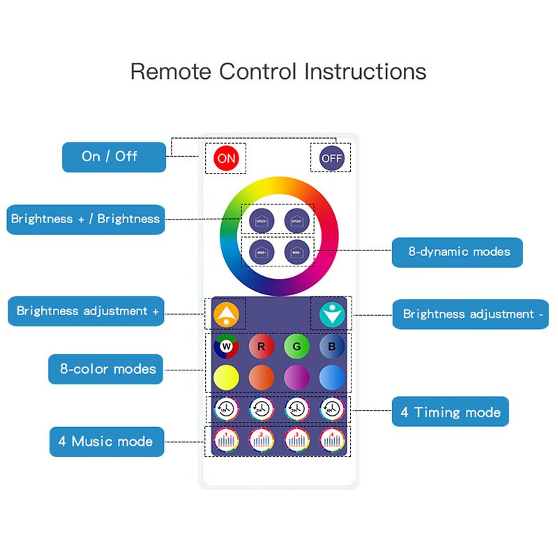 Лампи підключаються через Bluetooth і управляються за допомогою зручного мобільного додатка 📱 або пульта дистанційного керування. Ви зможете змінювати кольори, регулювати яскравість, вибирати режими та навіть синхронізувати світло з музикою.