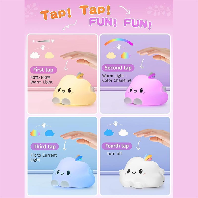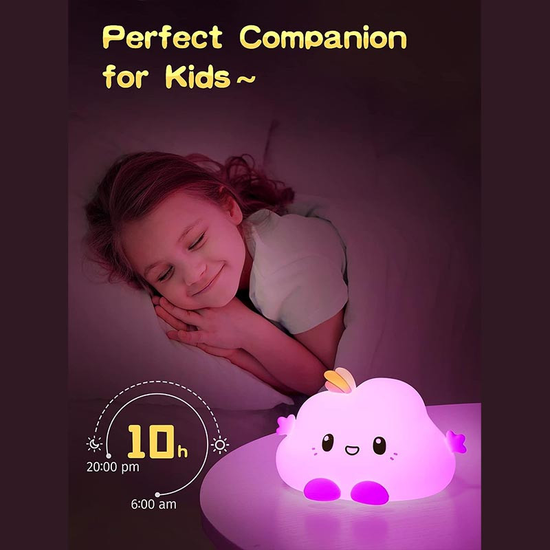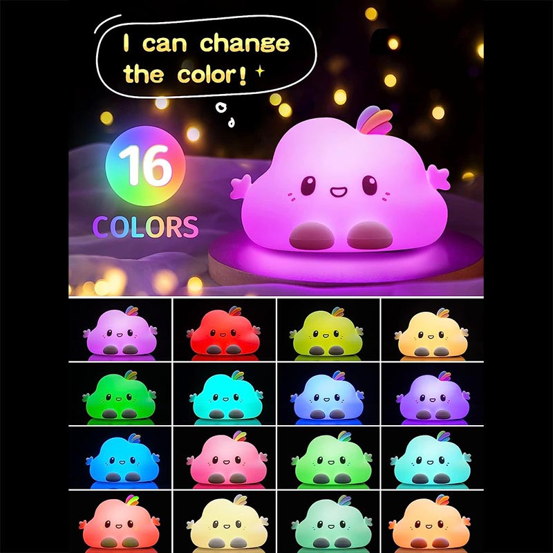 Милий нічник Cloud A12 у формі хмаринки створює затишну атмосферу та допомагає дітям почуватися спокійно перед сном. Завдяки м’якому силіконовому корпусу він безпечний навіть для найменших, а вбудований акумулятор на 1200 mAh забезпечує тривале використання без заряджання.