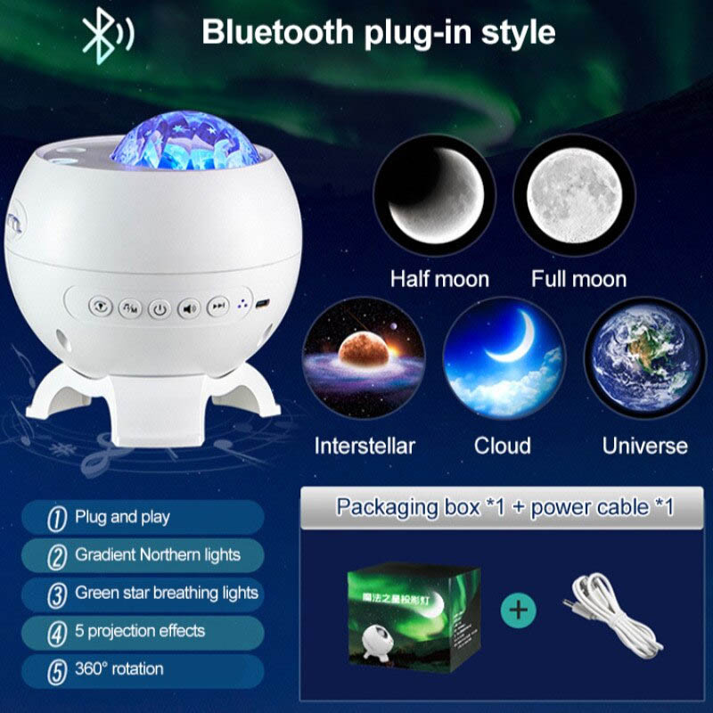 З чотирма квітами (білий, синій, червоний, зелений) та 10 режимами освітлення ви створите різноманітні космічні сцени, що надають вашому простору неповторності.