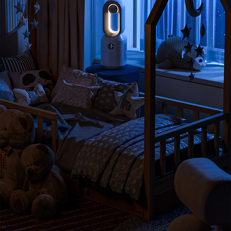 🌀 Потужний потік повітря – три режими роботи дозволяють налаштувати комфортний рівень обдування. Безлопатева конструкція робить вентилятор безпечним та майже безшумним.