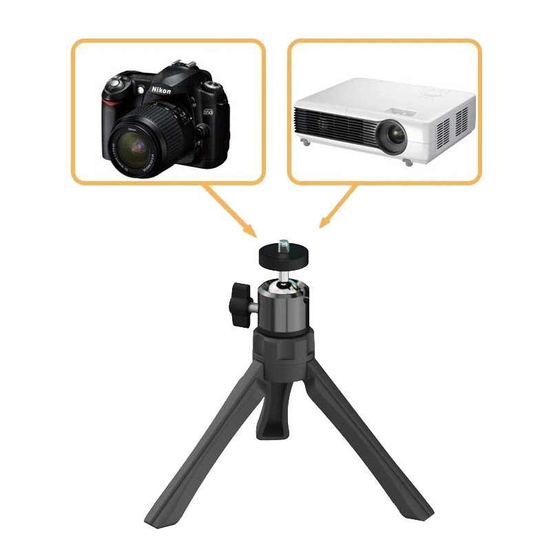 Компактний штатив-трипод висотою 19 см — зручне рішення для стабільної установки проектора чи смартфона. Завдяки складаним ніжкам і легкій конструкції він підходить як для домашнього використання, так і для подорожей чи презентацій. Металевий гвинт і міцна основа забезпечують надійне кріплення та стійкість на будь-якій поверхні.