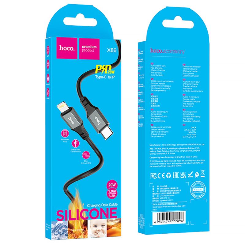 Кабель Hoco X86 Spear пропонує високу продуктивність та довговічність завдяки використанню якісних матеріалів. Він підтримує швидку зарядку PD 20W, що дозволяє швидко заряджати пристрої Apple, такі як iPhone та iPad.