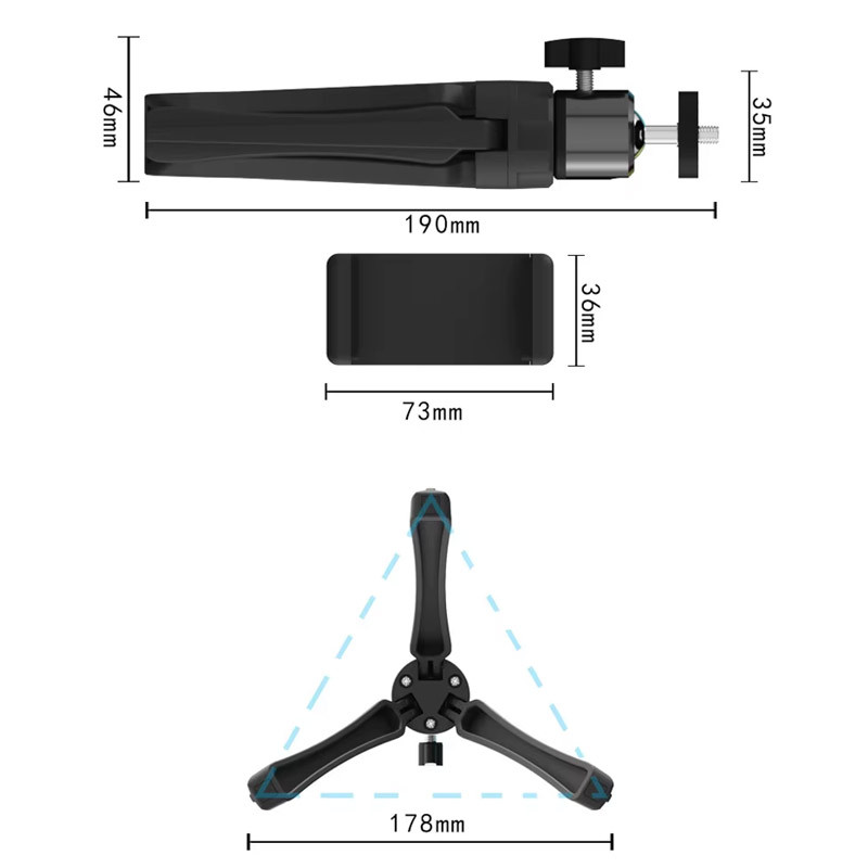 Компактний штатив-трипод висотою 19 см — зручне рішення для стабільної установки проектора чи смартфона. Завдяки складаним ніжкам і легкій конструкції він підходить як для домашнього використання, так і для подорожей чи презентацій. Металевий гвинт і міцна основа забезпечують надійне кріплення та стійкість на будь-якій поверхні.