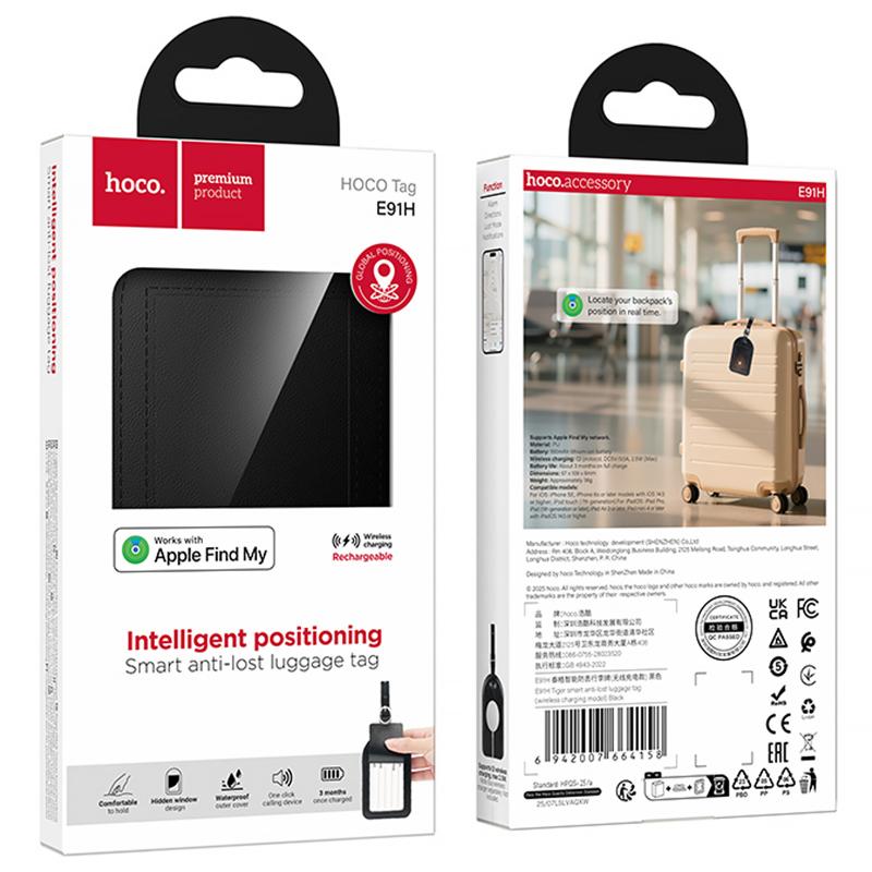 Трекер Hoco E91H підтримує функцію Apple Find My, що дозволяє легко знаходити ваші пристрої. Виготовлений з якісного PU матеріалу, він відрізняється міцністю та довговічністю. Компактні розміри 67 x 109 x 6 мм та вага всього 36 г роблять його зручним для носіння та використання в будь-яких умовах. Ємність батареї становить 100 мАг, що забезпечує до 3 місяців роботи без підзарядки.