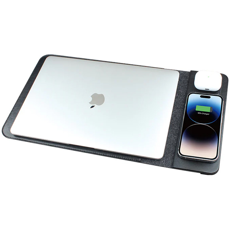 Універсальна підставка для ноутбуків з діагоналлю до 14 дюймів, також оснащена бездротовою зарядкою для смартфонів та навушників