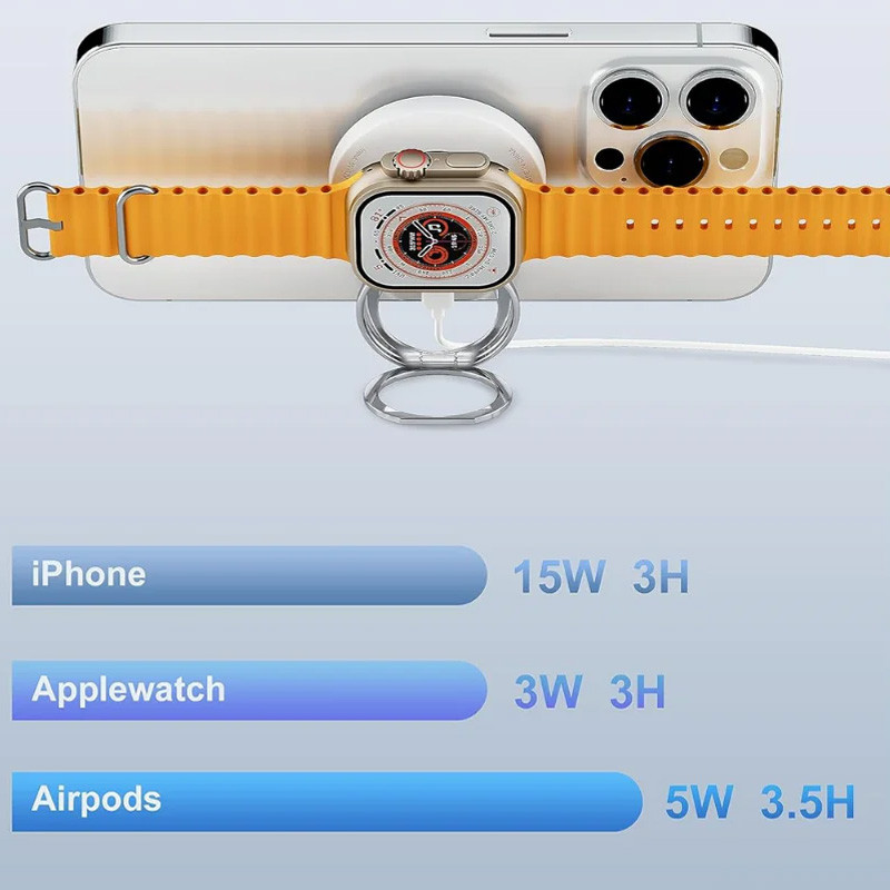 USB C вхід забезпечує швидку та надійну подачу енергії, підтримуючи до 15 Вт для мобільного телефону, до 3 Вт для Apple Watch і до 5 Вт для AirPods.
