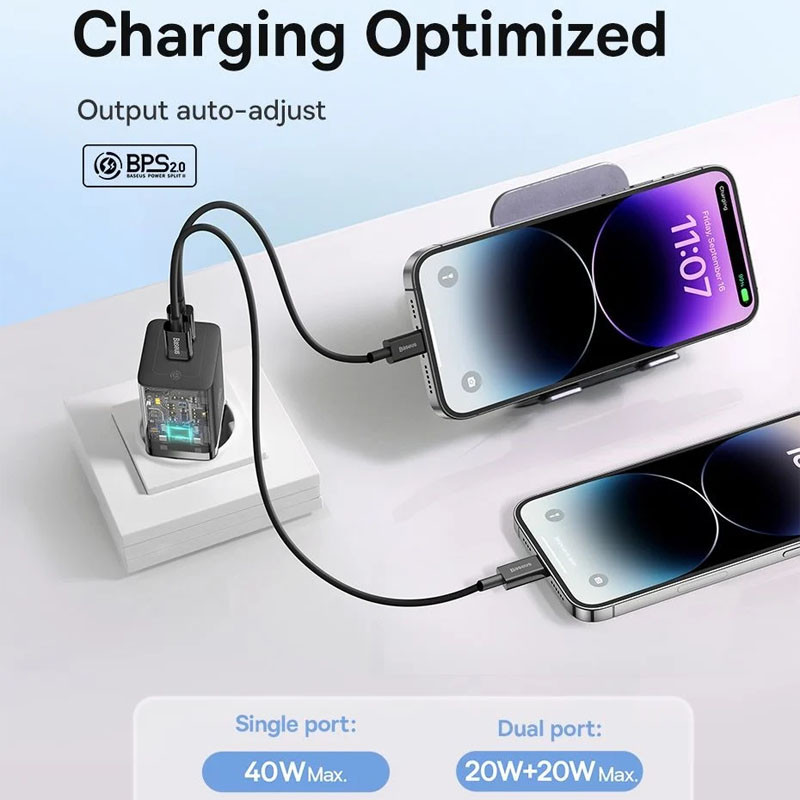 Зарядний пристрій Baseus GaN5 Pro OS оснащено передовими технологіями, які забезпечують швидку та безпечну зарядку. Використання технології GaN дозволяє пристрою бути більш компактним та ефективним, ніж традиційні зарядні пристрої. Воно підтримує потужність до 40W, що робить його ідеальним для зарядки сучасних гаджетів, включаючи смартфони та планшети.